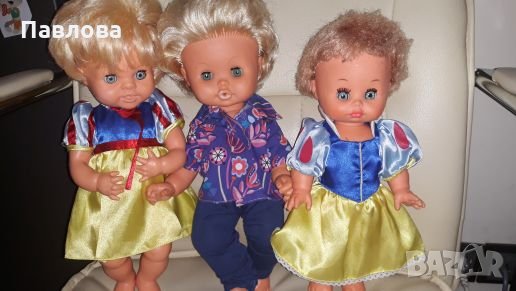 4 сн. Кукли с твърди тела. Първите две са високи 37 см. Най дясната 30 см. Първата от ляво на дясно продадена! Средната- 8,50 лв. Дясната 9 лв. Без дрехи са!