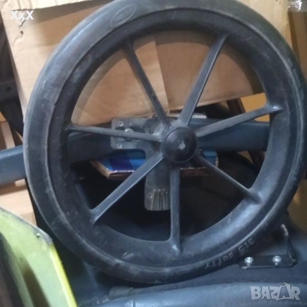 Колела с бандажни гуми, клик система за бързо демонтиране и спирачки за асистент. С пластмасови рингове. КАТО НОВИ