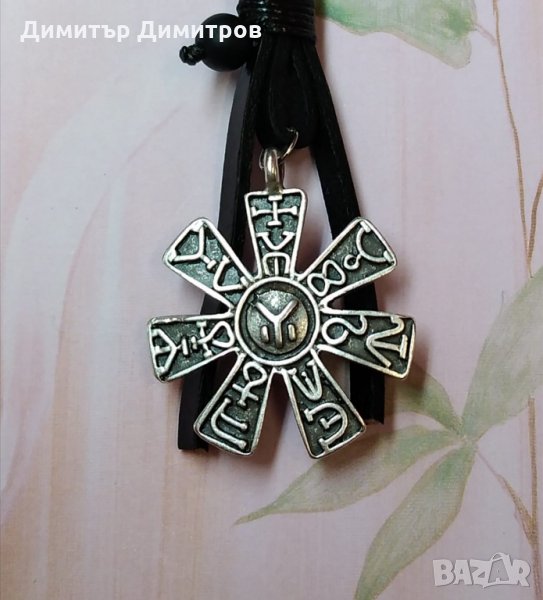 Ръчна изработка с естествена кожа. Бижута Луди гъби. Розетата е символ на принадлежността към големия род на българите. За потомците на Кубрат, Аспарух, Крум и Омуртаг розетата е свидетелство за кръвната им връзка със създателите на България. Българската розета е намерена при археологически разкопки през 1961г. в Плиска – столицата на Аспарухова България. Датира от VII-IX век, преди покръстването на българите. Бронзовият медальон има формата на звезда със седем лъча. Върху всеки лъч са изсечени по два прабългарски рунически знака. В горната й част има ухо за окачване на връв. На обратната страна на розетата има изсечен знакът IYI. Счита се за символ на бог Тангра и е използван от рода Дуло.