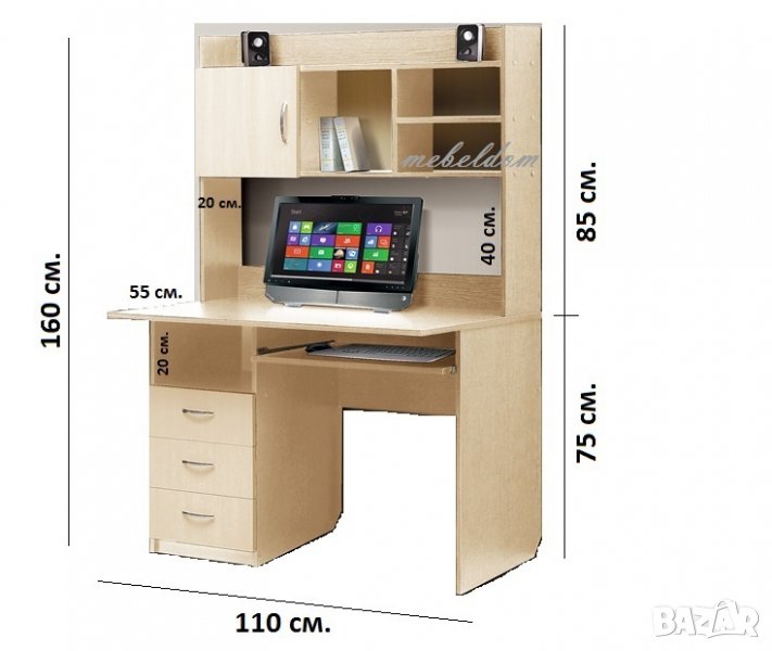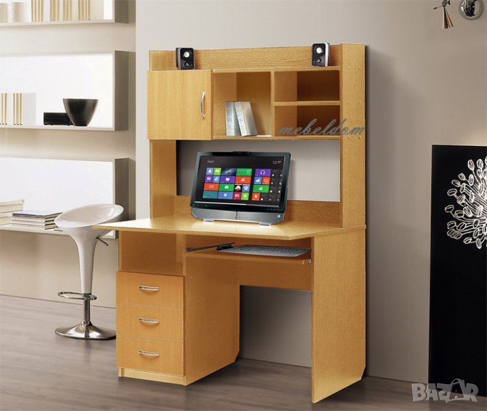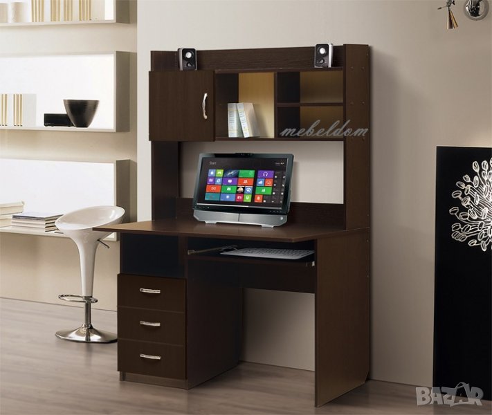Бюро 110см. с надстройка с 3 чекмеджета и клавиатура(код-1079) поставяне: до стена,бюрото е еднолицево