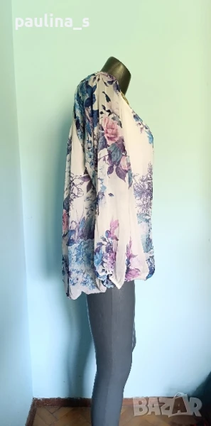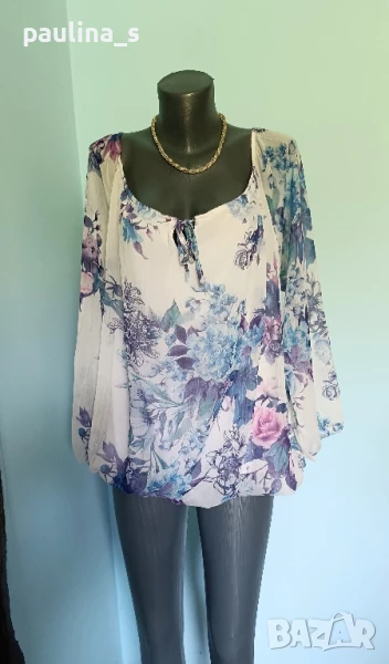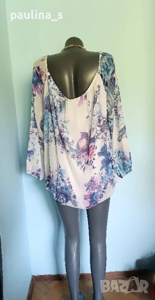 2️⃣. Колаж / XL / 3XL - "Pescara". Цената е крайна 24,99лв / 12,5 евро. Маркова блуза тип туника с възможност да се носи и с открити рамене. Облечена е на манекен с S размер и не стои подобаващо! Ръкавите са реглан, започват от бието, буфон в края. Деколтето и Долу са на хлабави ластици, поради размера. Материята ефирна органза, има и еластичен хастар, стои в лежер. Принтът е флорален, много красива дреха, голям размер. Не е чисто нова, но е без дефекти, една бройка, като нова.