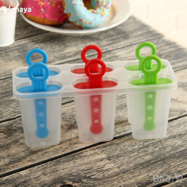 Комплект от 6 броя форми за сладолед на клечка събрани в едно. Идеални за приготвяне на вкусен и здравословен домашен сладолед Ескимо. Децата обожават ледени близалки! Формите са идеални за летните горещи дни. Супер лесни за употреба - просто напълнете формите с любимия разбит компот, плодов сок, фреш или млечен шейк, оставете за 2-3 часа във фризера и вече имате вкусен домашен сладолед!