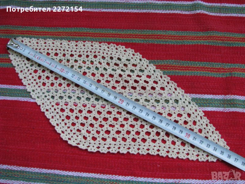 100% ръчен труд изплетени,неупотребявани.От първите 4 снимки 9 бр.от вторите 4сн 4бр като 3-те са от снежно бял конец,а едното от по тъмно бял.Към тези продавам още 2бр,които съм пропуснал да снимам със същата шарка на размери 100/50см,цената е за всичките 15бр.