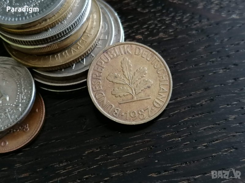 Монета - 10 пфенига от 1987г.; серия J