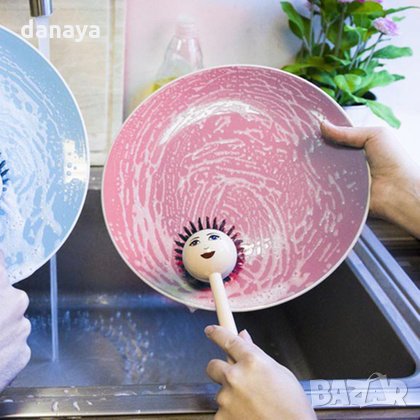 Четка за миене на съдове с весел дизайн - лице на дама, а четката е нейната прическа. Превърнете миенето на чиниите в забавление с този забавен кухненски аксесоар за почистване.