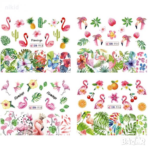 лист 12 в 1 Фламинго кактуси хаваи цветя слайдер татос ваденки водни стикери нокти маникюр → Обява 28561476