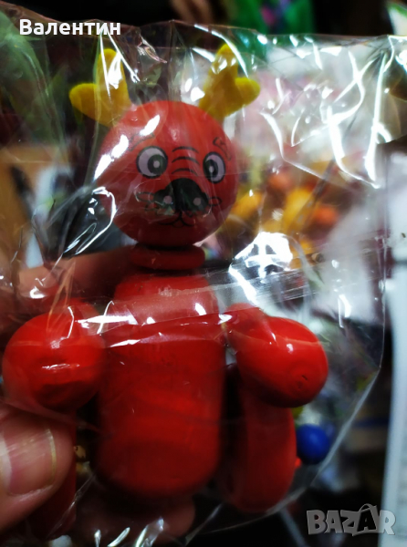 Сувенир от дърво - животно с пръчка за бутане. Дължина - 52см. Различни цветове.