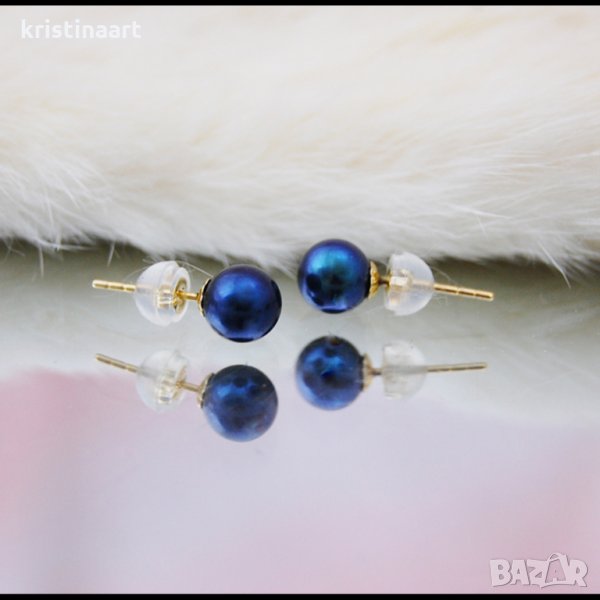Златни обеци от черни естествени перли, 6-7мм, 14К → Обява 28567472