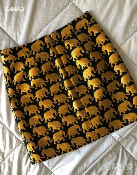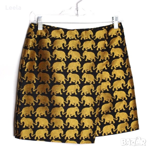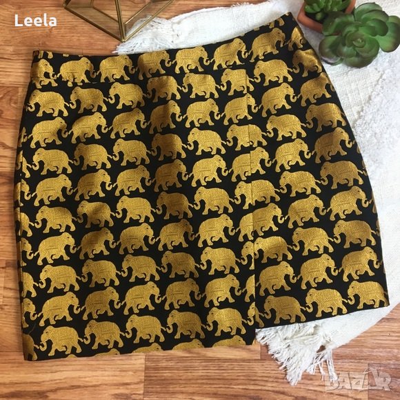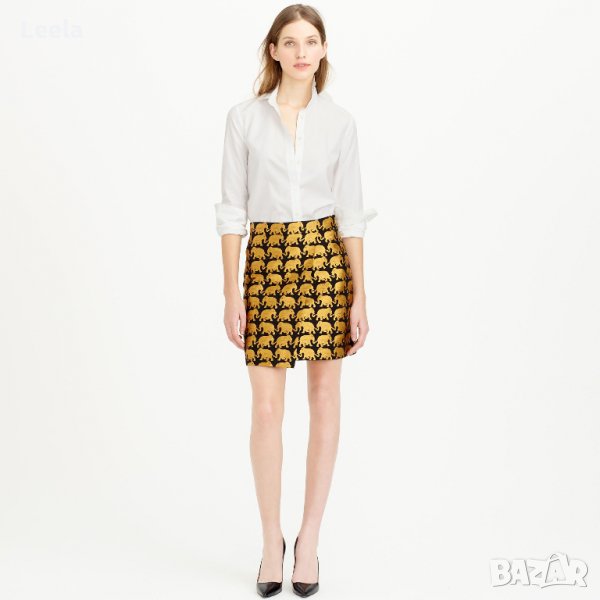 Жакардова мини пола J. Crew Limited Edition с десен на слонове от златни нишки.