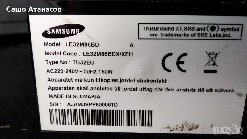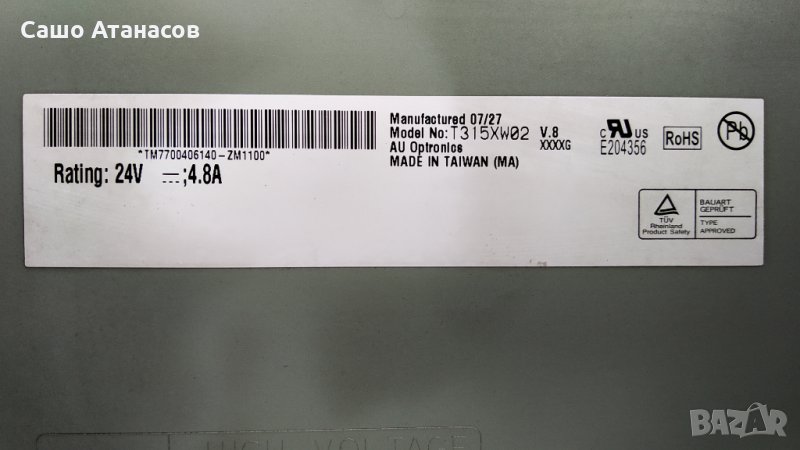 SAMSUNG LE32M86BD с проблемна матрица ,BN44-00156B ,BN41-00899A-MP1.0 ,4H.V2668.001/G ,T315XW02 V.8