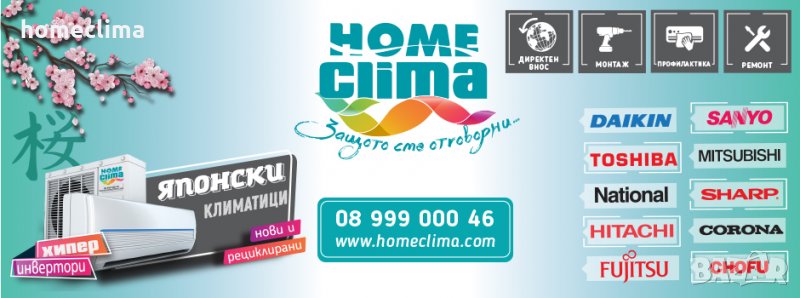 Хоум клима / Home Clima / има дългогодишен опит в рециклирането, монтажа, поддръжката и профилактиката на всички видове климатици и по специално на всички японски модели.