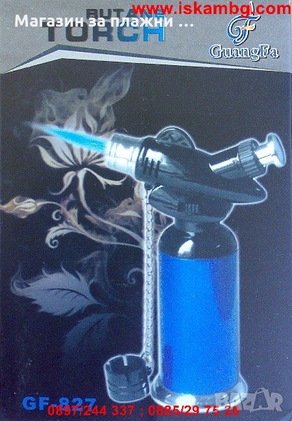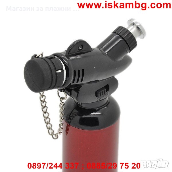 С регулатор на температурата и пламъка и с дюза за презареждане.