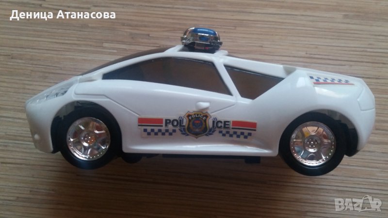 5) Полицейска светеща и движеща се кола 21х10 см, но звуците й не работят и едната задна гума пада, затова цената е символична 2 лв. или я подарявам при покупка на нещо друго
