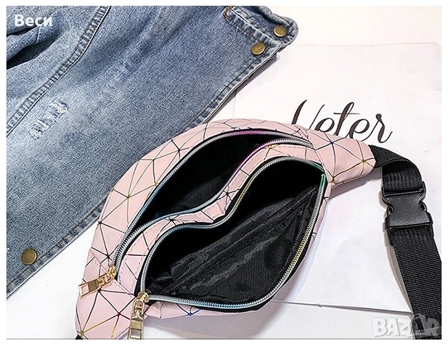 Нов модел паласки с холографичен дизайн. Подходящи за носене през кръст или през рамо. Практични и удобни, притежаващи 3 бр. джобове и съответно 3 бр. метални здрави ципа - 2-ва от лицевата стана и един от към гърба на чантичката. Побира перфектно телефони, слушалки, пари, портфейл, лична карта, бижута и др.