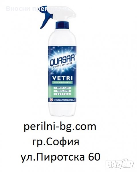 Квазар препарат за стъкла с амоняк, препарат за дърво, обезмаслител, препарат за баня. Препарати внос от Италия