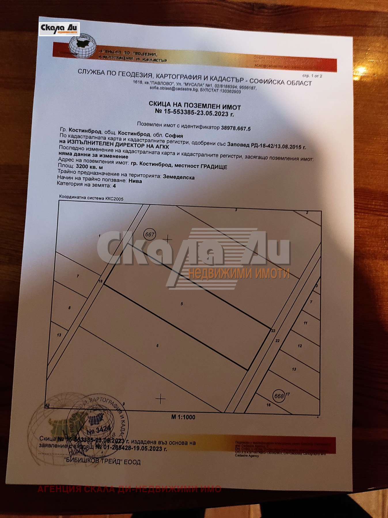 Предлагаме Ви един изключителено комуникативен, разположен в перспективен район ПИ/поземлен имот/ с площ 3200кв.м. Лице /30 м/.Има двустранен подход - откъм гр. Костинброд и откъм бул.'Европа'. Намира се на втора линия срещу КОКА КОЛА. Ток, вода, газ и асфалтиран път - в близост. Попада в зона ПС. Има становище за ПУП. Подходящ за фирмена база, логистичен център, складове, чисти производства. Отлична инвестиция. Възможност за присъединяване на съседен имот с площ от 4000кв.м.