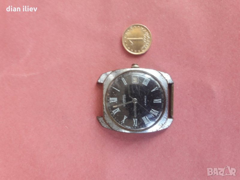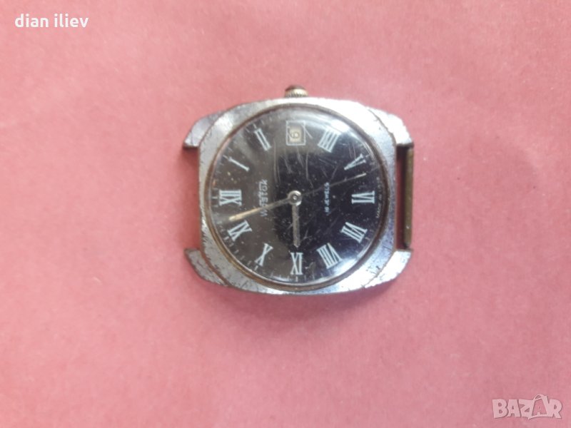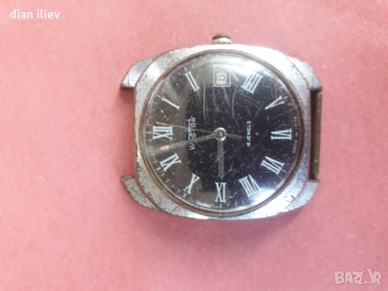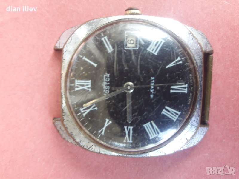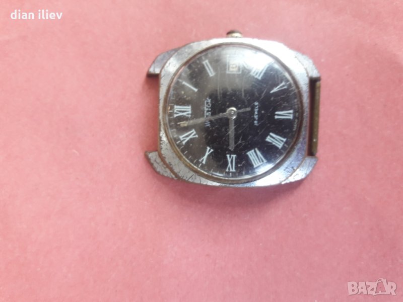 Стар мъжки механичен часовник-Восток,състояние видно на снимките,работи и сменя дата. Коронка за смяна,много трудно се навива в момента.