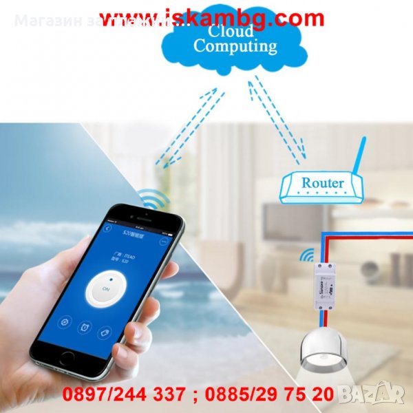 Sonoff представлява ново поколение безжичен интернет ключ, който може да включва различни електроуреди до 2,2 kW. Sonoff се свързва по WiFi с рутер, което позволява дистанционно управление на различни електроуреди с приложението eWeLink от Вашия смартфон (Android и IOS). eWeLink позволява директно включване/изключване, както и седмичен таймер - програматор с отделните дни от седмицата. Приложението командва произволен брой Sonoff -Smart ключове. Работно напрежение: AC 220V; Максимален ток на релето: 10A (2,2kW); Консумация: 0,5W; Размери: 88 х 38 х 25mm