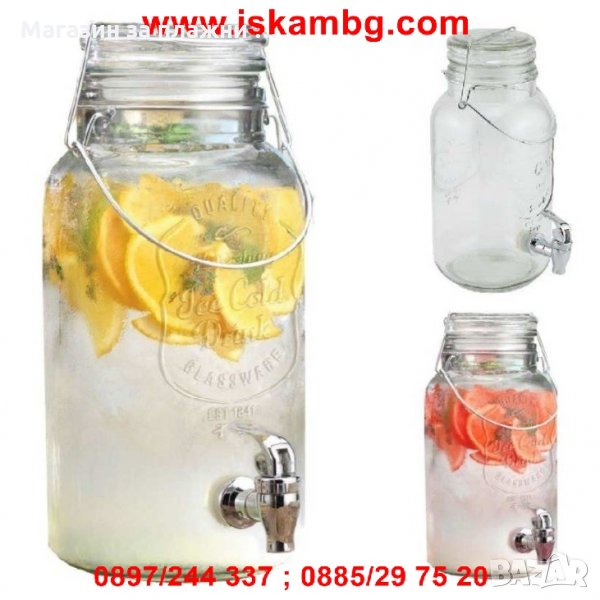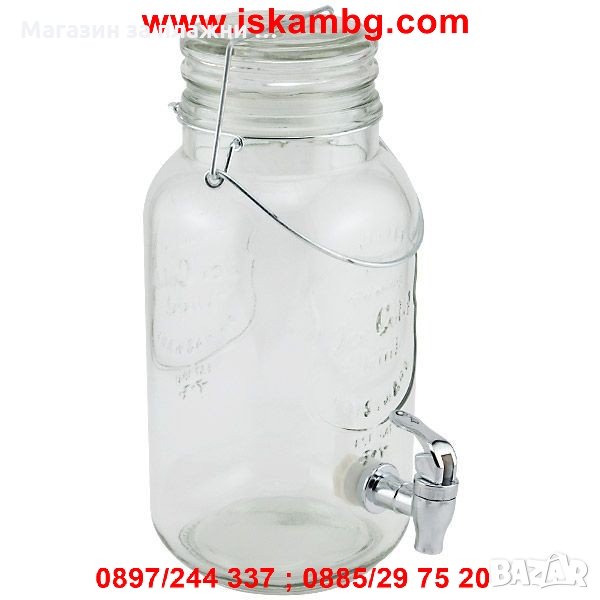Стъклен буркан / диспенсър за течности 2л с кранче → Обява 28585961