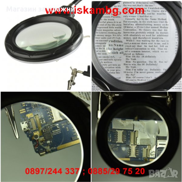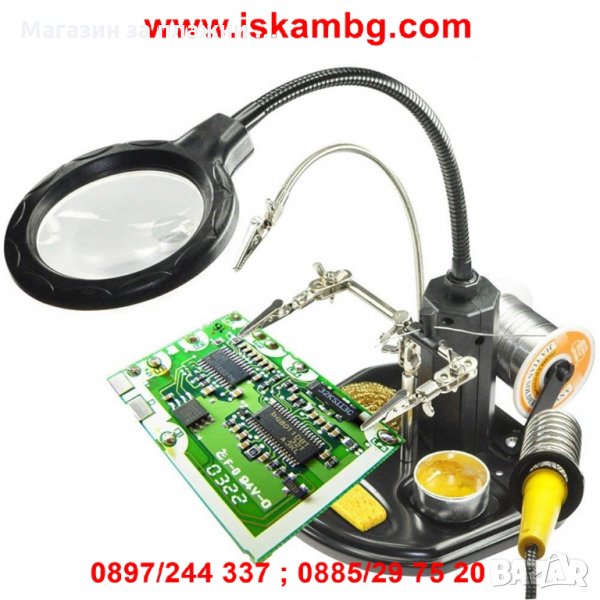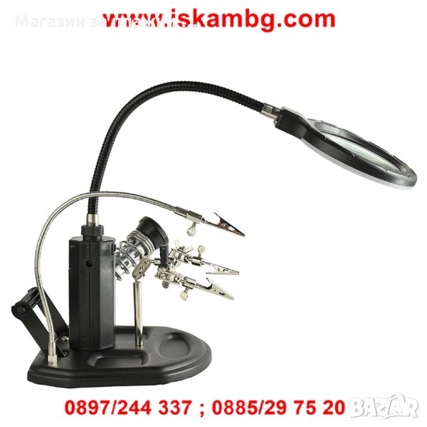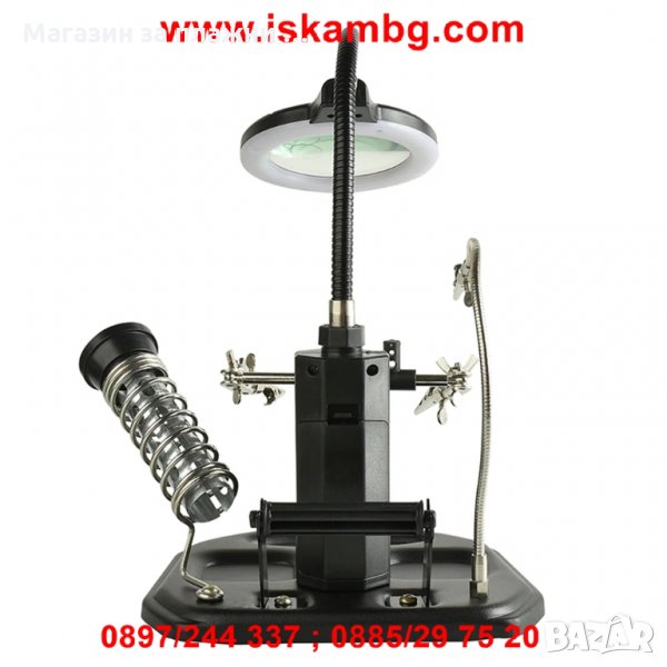 Настолна работна лампа с лупа, трета ръка и стойка за запояване