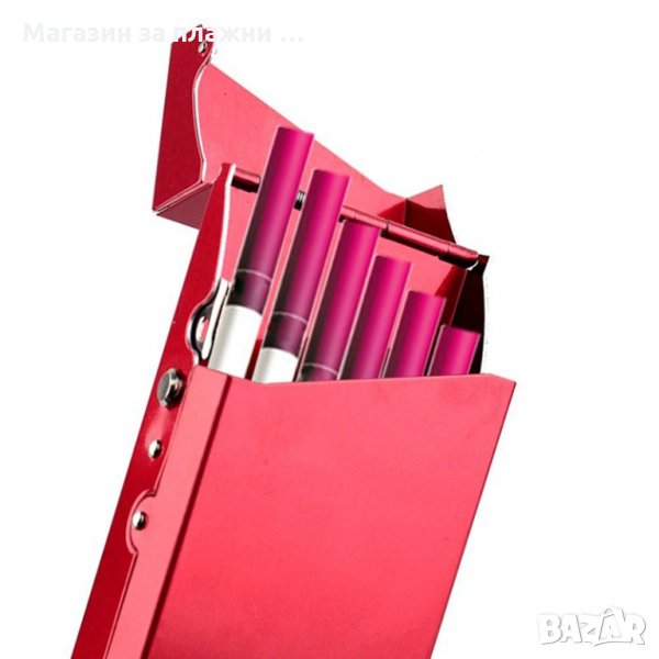 Метална кутия за цигари за ежедневна употреба. Луксозен здрав калъф от алуминий с лек и елегантен дизайн. За скриване на отблъскващите снимки по цигарите. Удобен за носене, съхранява цигарите от влага и мухъл ефективно. Лесен за отваряне и затваряне. Механична закопчалка с автоматично отваряне. Табакера за 100 милиметра с надпис. В табакерата не може да се постави кутия с цигари - поставят се 20 Slim цигари 100 мм или 10 от нормалните насипни цигари. Цигарите трябва да се местят!