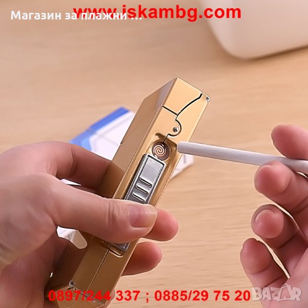 Алуминиева табакера с USB запалка за 100мм цигари → Обява 28596977