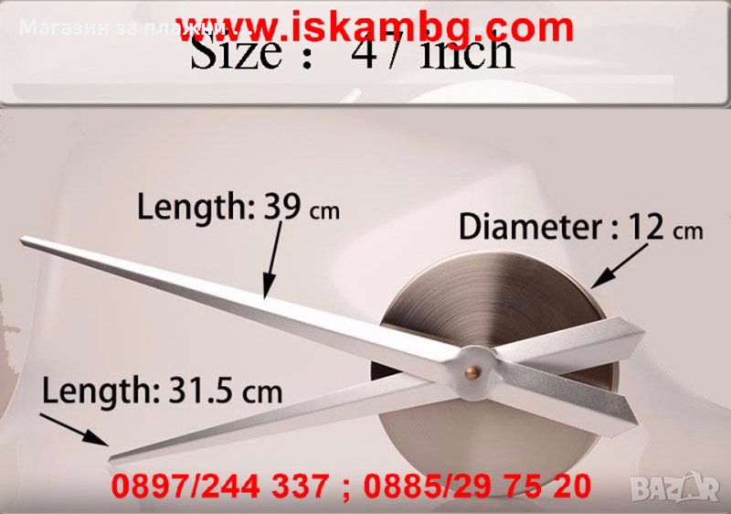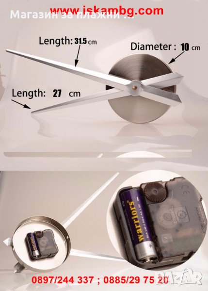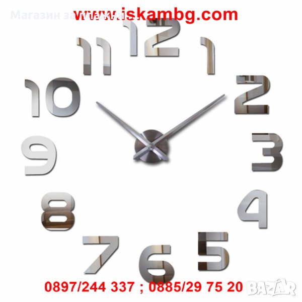 Модата на стенните часовници с кукувици, отавна е отминала, затова тук Ви представяме стенен часовник, но с един много оригинален и същевременно изчистен и класически дизайн. Този часовник се залепва върху гладки повърхности и ще пасне идеално на стени с всякакви цветове и помещения с най - разнообразен интериор - от по - традиционен до модерен. Иновативното и нестнадартното при този часовник е, че Вие сами може да изберете и направите неговия дизайн. Можете да избирате между цифри и точки, както и да ги поставите заедно в такава форма, каквато на Вас Ви харесва: ромбоидна, квадратна и др. Някои от елементите може да сложите по - близо или по - далеч, всичко зависи от вашето въображение. Този часовник е с безшумен и точен часовников механизъм. Той е изработен от ABS пластмасови, EVA и елекронни части. Размерите на комплекта са: 32 × 24.5 см. ; а на отделните елементи: височина на чертичките: 5 см. ; височина на единичната цифра: 9 см.; диаметър на точките: 2 см.; дължина на стрелката за минутите: 18.5 см. ; дължина на стрелката за секундите: 17 см.; дължина на стрелката за часа: 14.5 см. Теглото на комплекта е 500 гр. За да го сглобите лесно и правилно, трябва да поставите листа с образеца за разположението на часовника върху стената и да го закрепите с малко тиксо, за да е неподвижен. След това да очертаете с молив и точици празните места на цифрите на стената. После да отлепите предпазващите лепенки на цифрите и точките, които ще използвате, да ги извадите от подложката и да ги залепите на местата, където искате да стоят, по нататък поставете батерията в механизма на часовника и настройте точното време, закачете часвниковия механизъм и стрелките по средата на часовника и вашия нов и нестандартен часовник е готов!