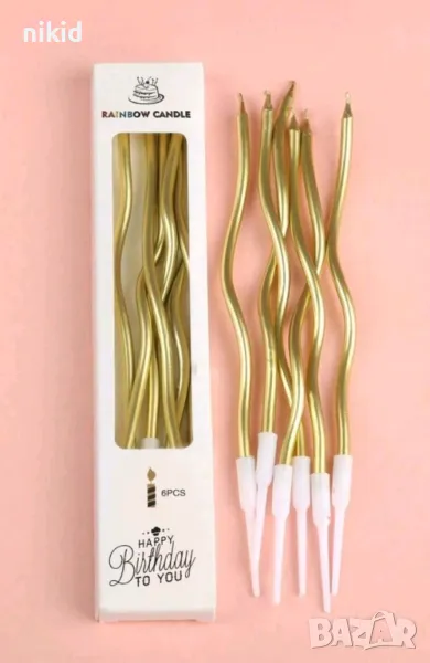 6 бр дълги тънки спираловидни свещи за украса торта декор рожден ден парти → Обява 28599075