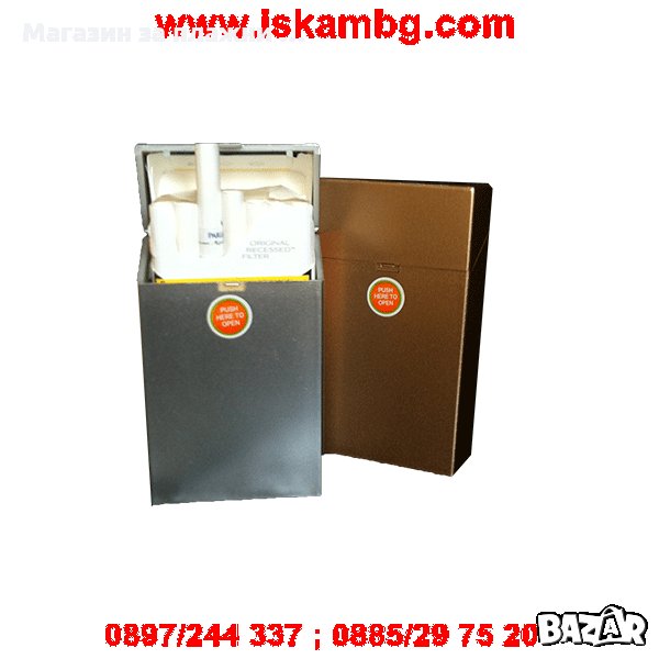 Уникална пластмасова табакера - кутия за цигари, която предпазва вашите цигари от повреди или скъсване! При натискане на надписа push here to open тя се отваря!!!