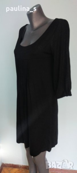Брандова еластична рокля с обло деколте, 7/8 ръкави с набор и плисета. Платката отпред е двойна. Дрехата е много изискана, без забележки, нова. Поради голямата еластичност покрива няколко размера.