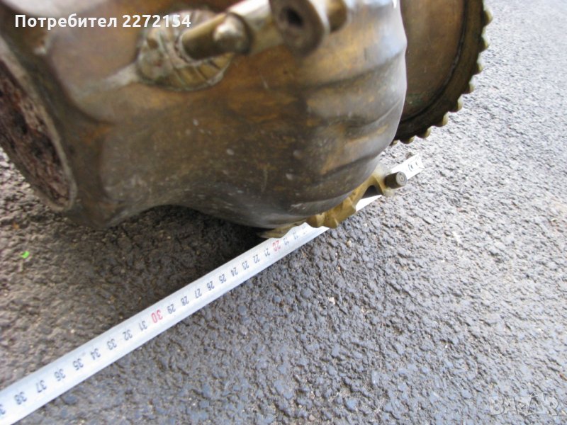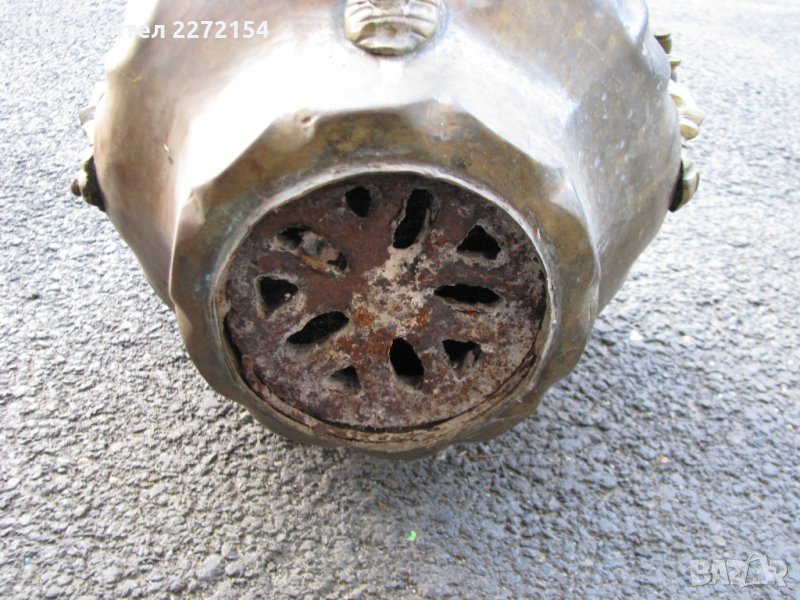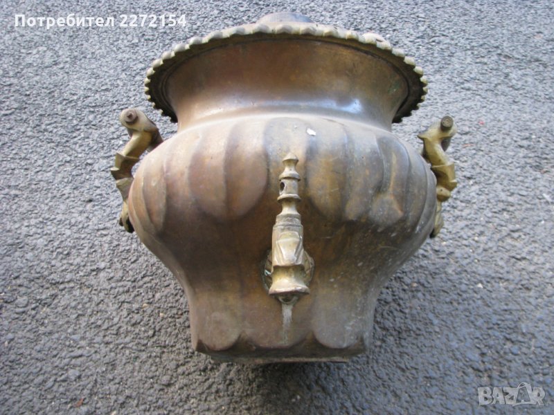 Османски бронзов,бил е заработен в огнище / печка,доливана му е постоянно вода,хем е овлажнявал въздуха хем винаги е имало под ръка гореща вода било за чай или нещо друго.Има печат тигър срещу слон,а посредата им огнище и старо арабски букви отгоре.Здрав е държи вода и кранчето му работи.