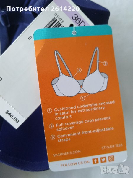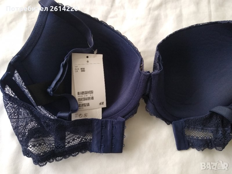Тъмно синият с дантела е на НМ -размер 85Д. Той е 32лв