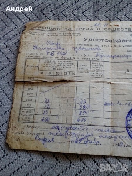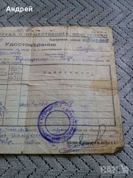 Старо удостоверение 1940 → Обява 28617351