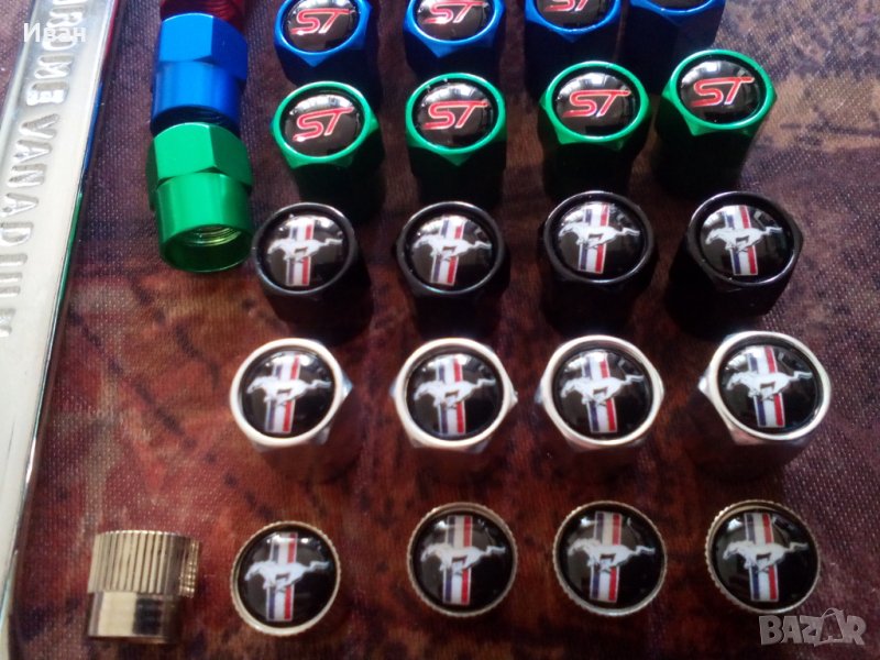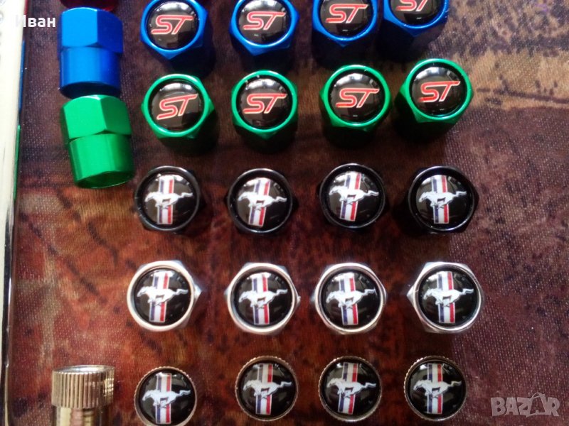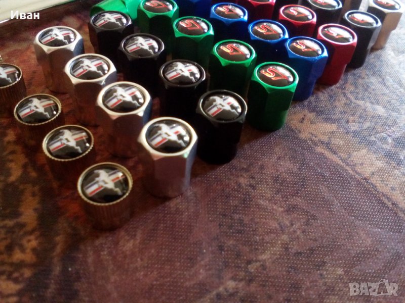Цена на капачки за вентили с емблеми на бягащо конче на Форд Мустанг 4броя - 10 лв.