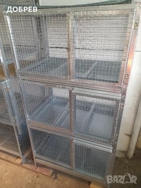 двуетажна 120/100/50см с тавички -250лв и триетажна 160/100/50 см с тавички -375 лв.Снимки 3 и 5 за кокошки.Снимка 4 150/60/50см разделена на 2 секции-180 лв.Снимка 6 150/100/60см -300лв.Снимка 7 150/60/50см -160 лв.Снимка 8 100/60/50см -110лв.Снимка 9 100/70/60см с пласмасово дъно -180 лв.Снимка 15 140/60/50см с родилно отделение - 180лв. Имам клетки за пъдпъдъци,кокошки,пилета, гълъби,кускумриики,пуйчета,папагали ,канарчета ,яребици ,кеклици ,катерички и др.животинки.Изработвам и имам някои модели модули на 2,3 и 4 етажа