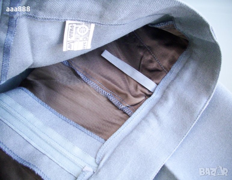 Официален детски панталон, подходящ за есен, зима и пролет. Произведен в България, завод ”Арда” - Русе. Цвят светло сив. Материята е гладка, плътна, тежка, не лепне и не е лъскава, държи ръб. Състав 100 % вълна. Може да се пере на 40º, гладене със слаба ютия, възможно химическо чистене, не се избелва.