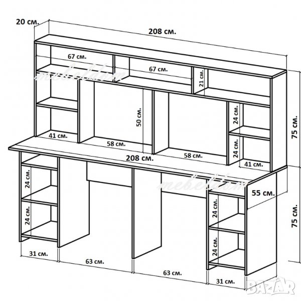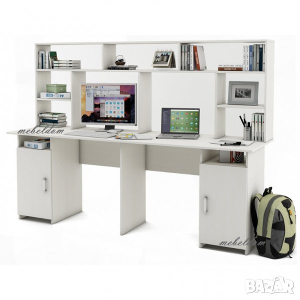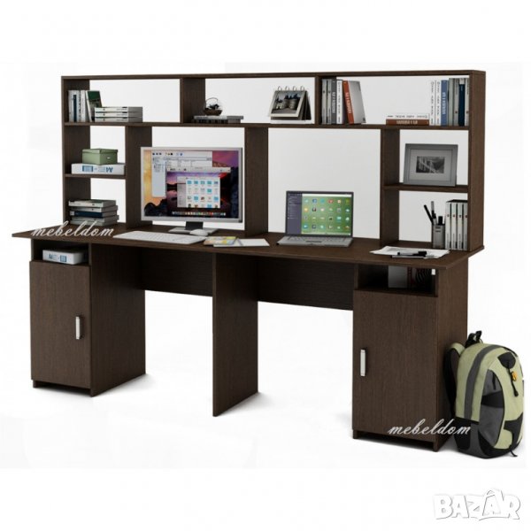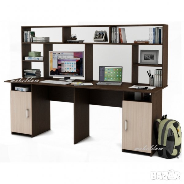 Бюро 208см. за двама с надстройка и 2 плавни врати(код-1108)