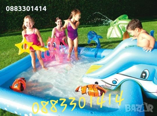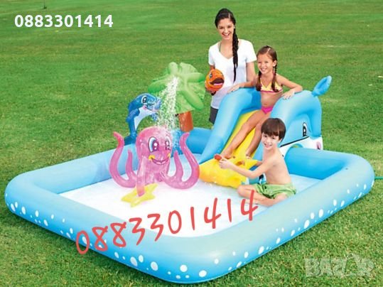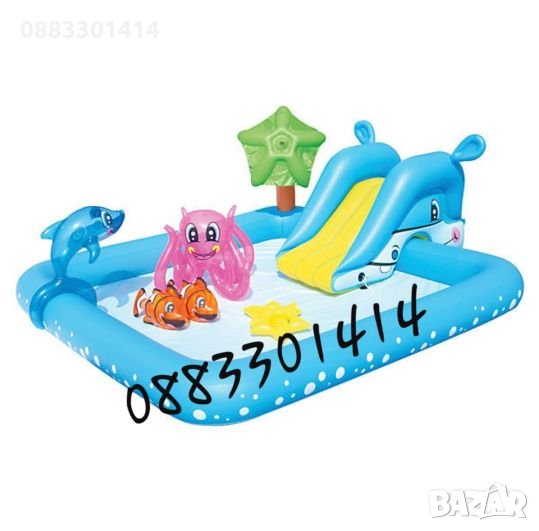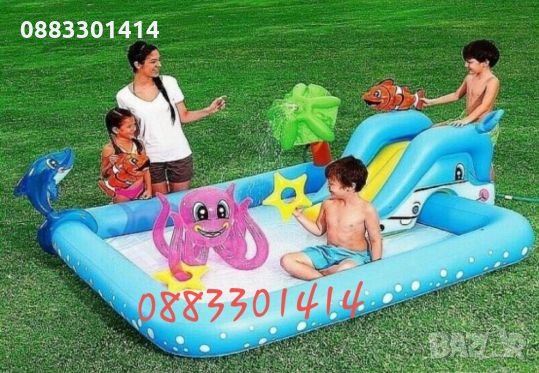 Воден център за игра с басейн, пързалка, фонтан и подарък 8 броя надуваеми играчки!