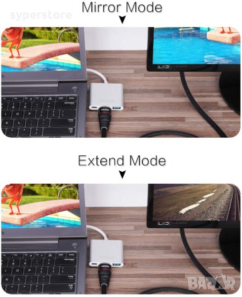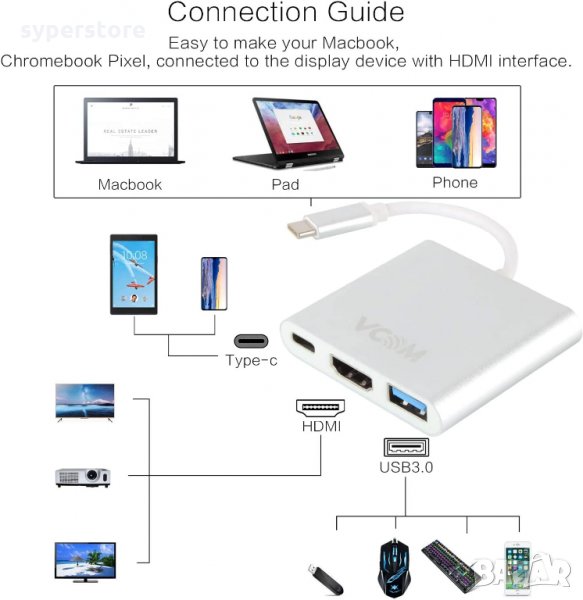 Преходник от TypeC към HDMI USB3.0 TypeC SS000105 Адаптер TypeC към HDMI Докинг Станция Adapter Type → Обява 28643711