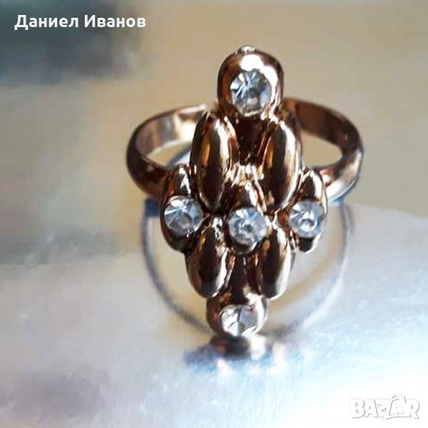 Златен пръстен 18к със камъчета Сваровски НОВ → Обява 28644355