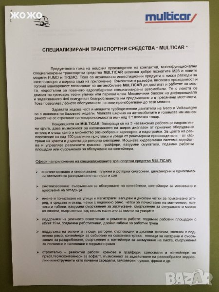Рекламни проспекти на Мултикар(Multicar) → Обява 28657745
