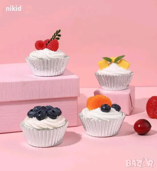 50 бр Златни сребърни хартиени капсули кошнички за кексчета мъфини парти → Обява 28661634