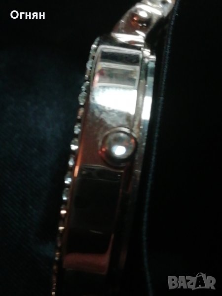 Корпус и Верижка от неръждаема стомана с полировка и устройство покритие в старо злато, Диамант на короната. Тока с бренд.