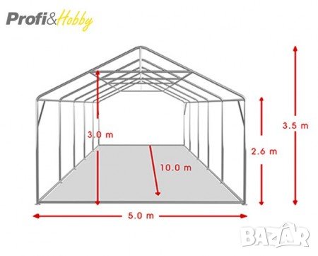 Професионална шатра 5x10 м XXL, огнеустойчив PVC брезент 550 гр/м2
