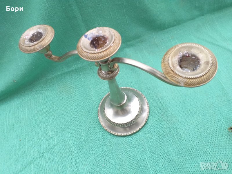 Посребрен свещник за 3бр свеши → Обява 28670098