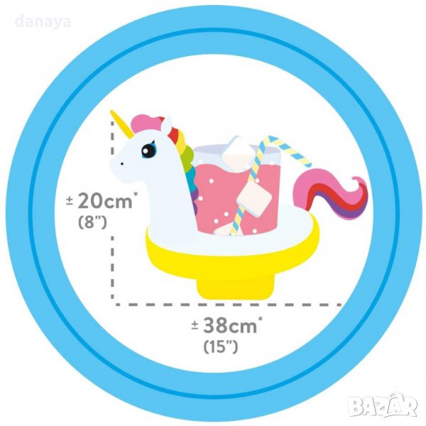 Надуваема поставка за чаша Еднорог. Плуваща поставка за напитки, която ще държи чашата или кенчето ви с любимата напитка, когато сте във водата. Чудесен летен аксесоар за перфектна почивка!