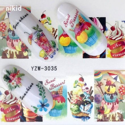 YZW-3035 мелба сладолед татос слайдер ваденки водни стикери маникюр нокти, снимка 1 - Продукти за маникюр - 28671312 YZW-3035 мелба сладолед татос слайдер ваденки водни стикери маникюр нокти, снимка 2 - Продукти за маникюр - 28671312 1/2