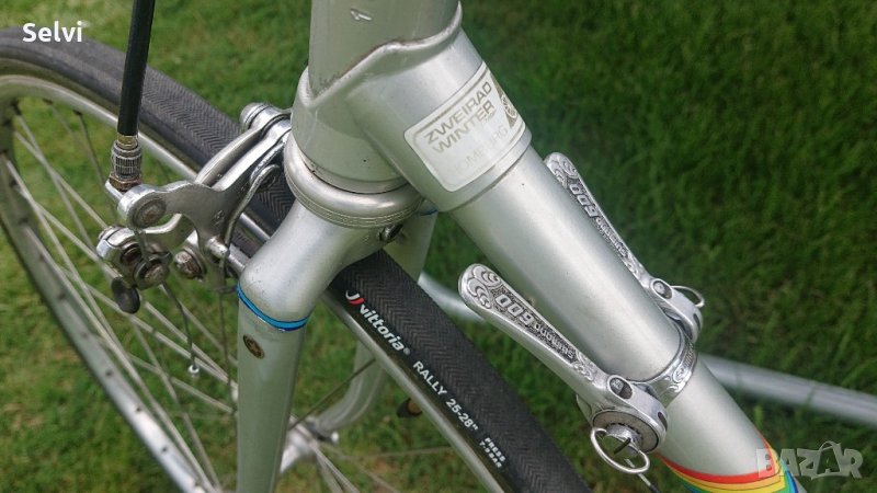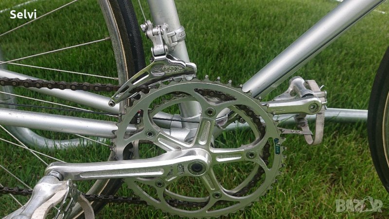 Велосипеда е ретро бижу, модел 1980гд. След профилактика -сменени всички жила и смазан всеки лагер.Нови тубуларни гуми комплетовка на Shimano 600 arabesque. Вертикала 57 Хоризонтално 56.
