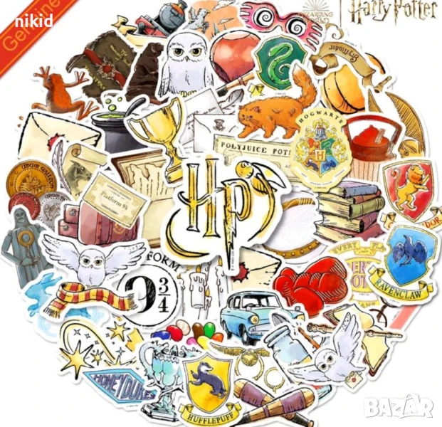 1 вид 50 бр Хари Потър harry potter самозалепващи лепенки стикери за украса декор картонена торта → Обява 28674916