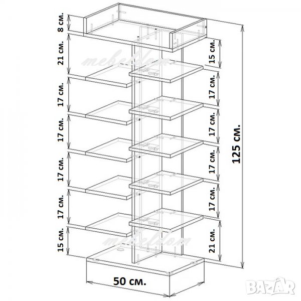 размери: 50 / 35 / височина 125см. (виж схемата)